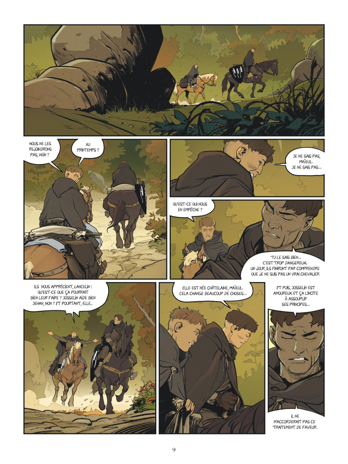 Cependant, c’est sans compter sur le courage et la ruse de Lancelin. Bientôt, Josselin et Jehan, prévenus par Maïeul, récupèrent un Lancelin grièvement blessé. Gaucher, lui, n’a pas dit son dernier mot. Il s’est trouvé un nouvel allié de circonstance, un brigand qui se prétend chevalier, sous le nom de Renart. Avec son aide, il traque nos héros sans relâche.
