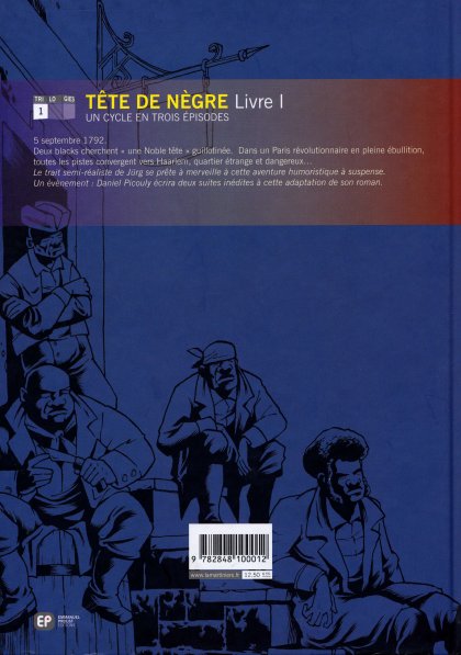 5 septembre 1792. Deux blacks cherchent " une Noble tête " guillotinée. Dans un Paris révolutionnaire en pleine ébullition, toutes les pistes convergent vers Haarlem, quartier étrange et dangereux... Le trait semi-réaliste de Jürg se prête à merveille à cette aventure humoristique à suspense. Un événement : Daniel Picouly écrira deux suites inédites à cette adaptation de son roman..