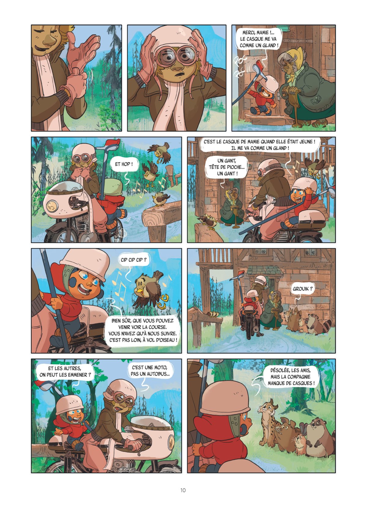 Tandis que les gaz d’échappement et les odeurs d’essence envahissent le sous-bois, Milady s’élance sur son engin pétaradant. Elle est prête à affronter l’Homme-Parachute et sa trottinette, le Fantôme et sa moto-araignée, ou encore Miss Flower et son buggy. De son côté, Tête de Pioche se donne une mission de la plus haute importance : mettre un terme à la course afin de protéger la tranquillité des habitants de la forêt... et sauver le loup !