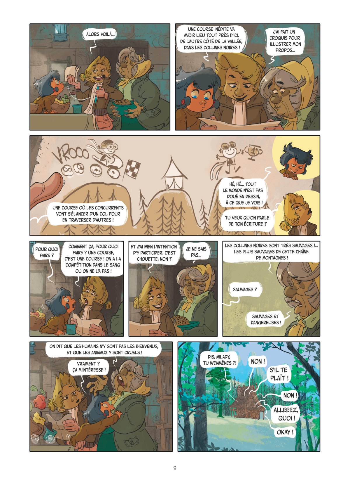 Elle est de retour pour participer à un grand événement : une course qui doit traverser les collines Noires, situées tout près de chez sa grand-mère. Ces collines ont mauvaise réputation. On dit qu’elles seraient peuplées d’animaux cruels et qu’elles ne seraient pas hospitalières pour les humains.