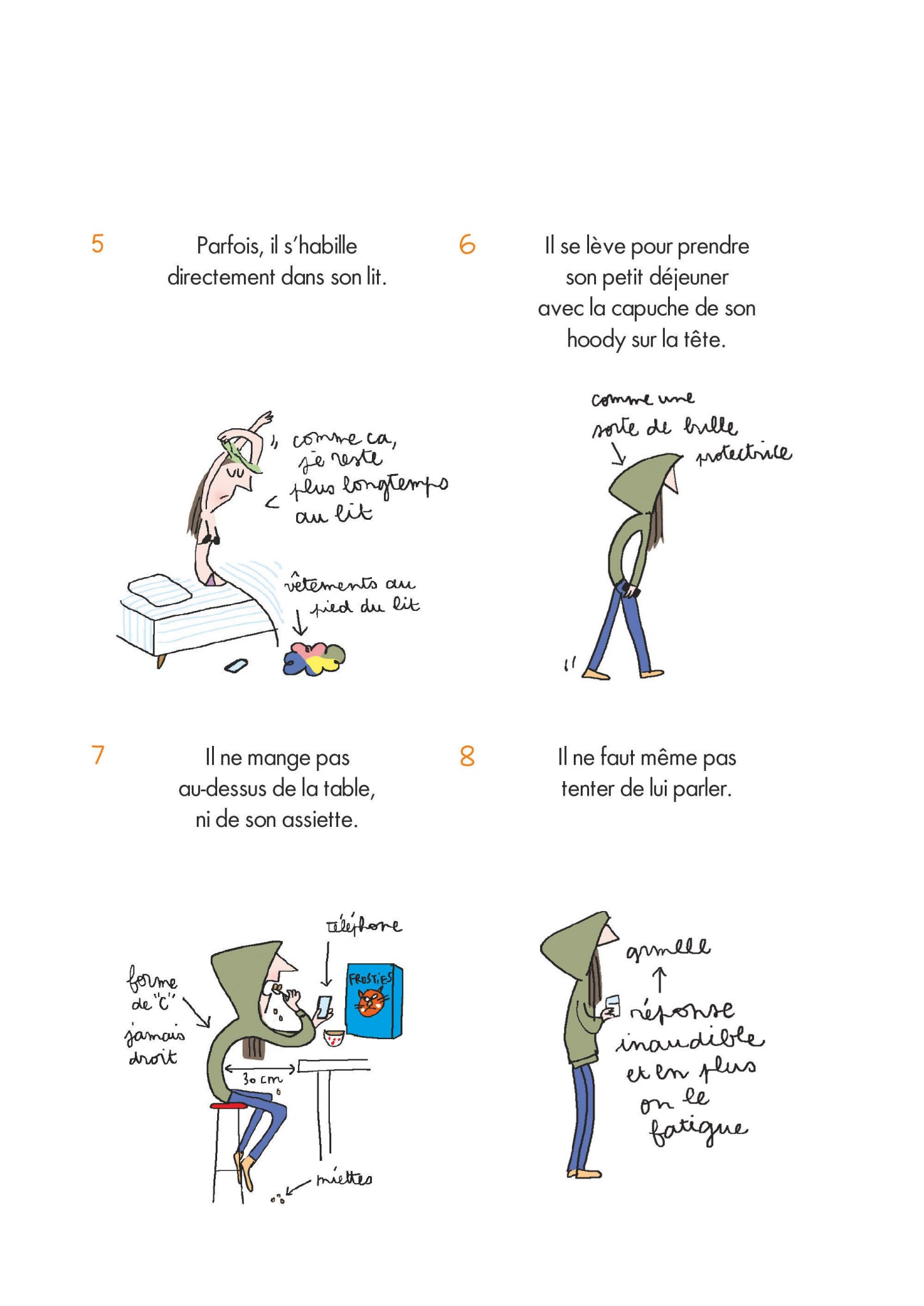 Vous les jugez hypersensibles, hyperconnectés, hypercompliqués ? Soyons honnêtes, l’adolescence est une période déconcertante pour tout le monde et bien souvent, les parents se retrouvent démunis. Pour mieux communiquer et surtout pour les accompagner sans jugement durant cette période de changements, le duo Soledad Bravi et Agathe de Lastic croquent avec finesse le quotidien des jeunes, en donnant clés et conseils pour dédramatiser, agir ou simplement accepter leur comportement en comprenant ce qui se passe dans leur cerveau. Ils se couchent tard, passent des heures au téléphone avec leurs copains, ne parlent plus, sont toujours avachis sur le canapé, ne rangent rien ? Ces situations vous rappellent peut-être quelque chose ? Fêtes, potes, expériences à risques, sexualité, amitié... ce sont tous ces thèmes que nos deux autrices abordent avec humour pour nous aider, nous parents, à mieux connaître certaines réalités de nos adolescents, et être plus indulgents à leur égard. Dans la tête de mon ado, dépeint la vie des adolescents avec humour et bienveillance, tout en apportant une analyse scientifique grâce à l’éclairage subtil de Grégoire Borst. Un one-shot qui fait du bien. A lire seul ou avec son ado !