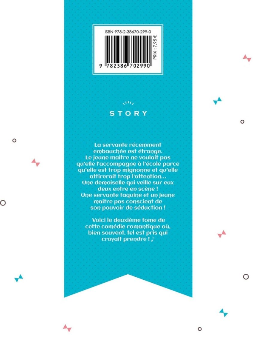 La servante récemment embauchée est étrange. Le jeune maître ne voulait pas qu’elle l’accompagne à l’école parce qu’elle est trop mignonne et qu’elle attirerait trop l’attention... Une demoiselle qui veille sur eux deux entre en scène ! Une servante taquine et un jeune maître pas conscient de son pouvoir de séduction ! Voici le deuxième tome de cette comédie romantique où bien souvent, tel est pris qui croyait prendre !