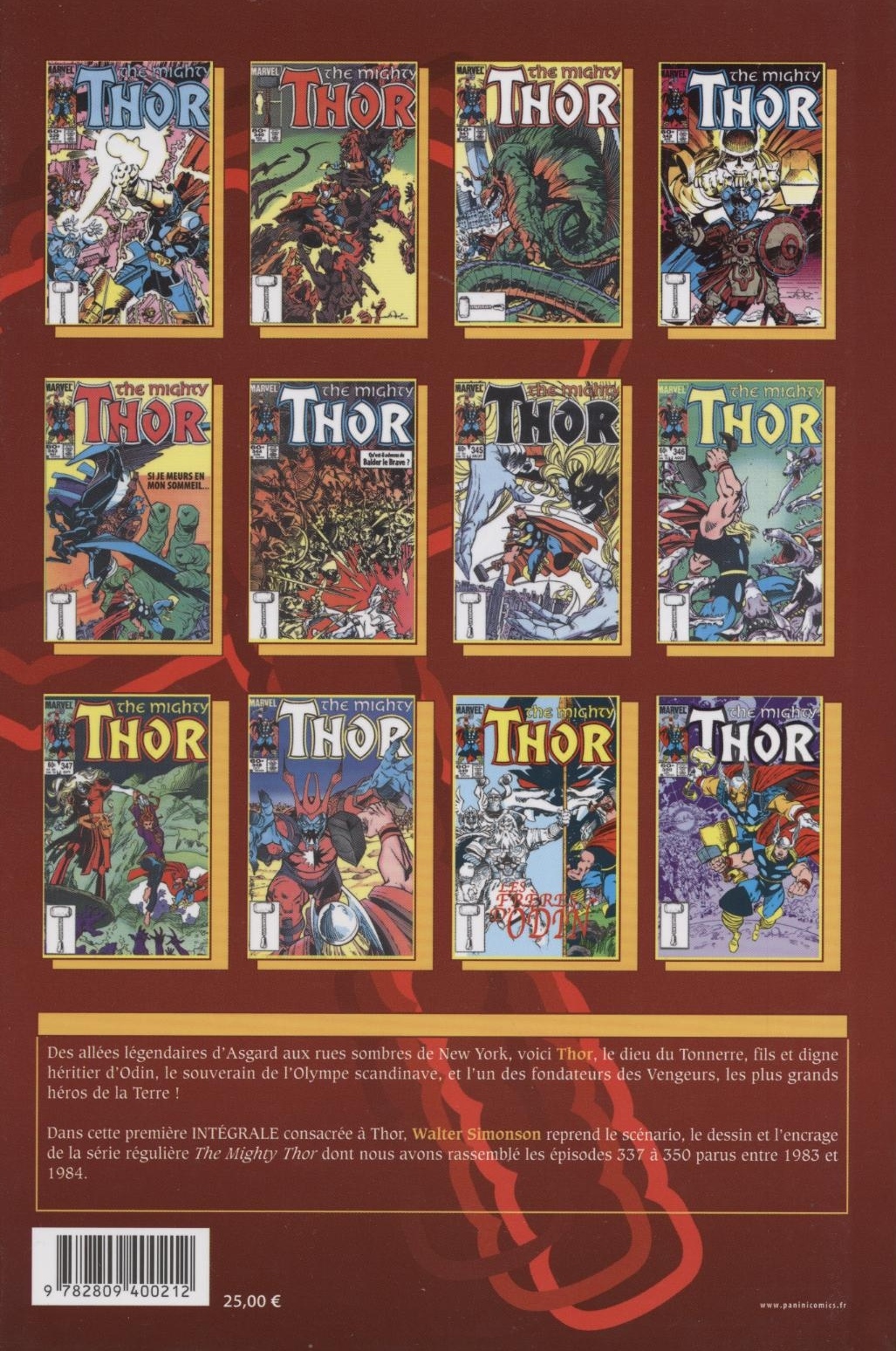 Dans cette intégrale consacrée à Thor, Walter Simonson reprend le scénario, le dessin et l’encrage de la série régulière The Mighty Thor dont les épisodes 337 à 350 parus entre 1983 et 1984 sont rassemblés.