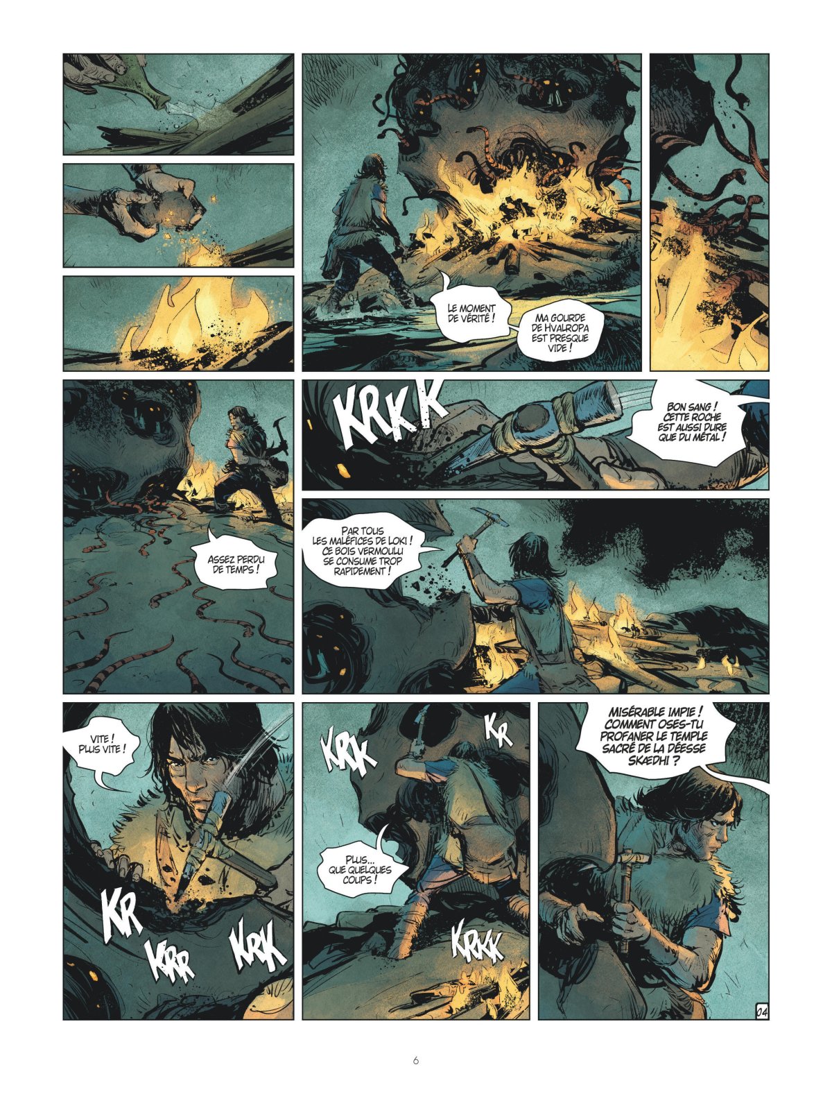 Mordu par une vipère rouge au fond d’un véritable labyrinthe souterrain alors qu’il venait enfin de découvrir la légendaire roche aux mille yeux de la déesse Skaedi, Thorgal doit pourtant parvenir à extraire et à ramener un fragment de cette mystérieuse pierre tombée d’Asgard, s’il veut sauver Jolan et Boréale. L’aide d’une jeune chasseuse de serpents ne sera pas de trop pour notre « enfant des étoiles », s’il veut avoir une chance de triompher sur l’échiquier d’Odin !