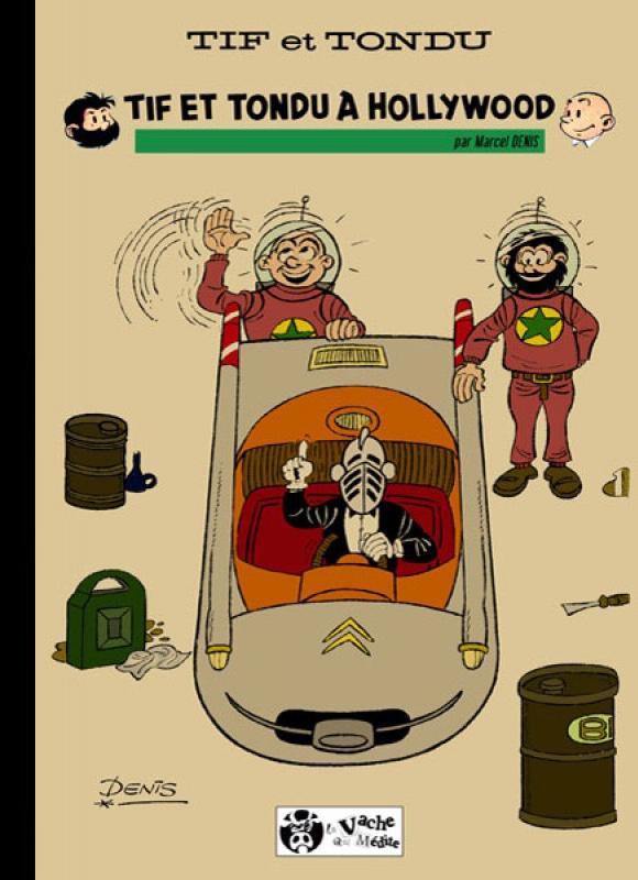 "Tif et Tondu à Hollywood" est la première histoire que dessine et scénarise Marcel Denis. Il en fera deux au total avant que Will ne revienne et ne reprenne la série.Cette histoire complète en 44 pages est parue en 1960 dans le "Journal Spirou" du numéro 1135 au numéro 1160.Elle n’a jamais été officiellement publiée en album. Pour rappel : En vacances au bord de la méditerranée, nos amis sont en plein conflit ... Tif s’ennuie ferme car Tondu s’est pris d’une passion dévorante pour le cinéma, et de rocambolesques péripéties les amènent à Hollywood. A peine arrivés, ils sont kidnappés ... par leur propre employeur, Big Sicklet, magnat des studios Metropolis, voulant prendre de vitesse son rival Bill Dozer. Ils vont tourner une surproduction : "Deux hommes dans l’espace". Après maints rebondissements, tentatives d’enlèvements et gags farfelus, Tif et Tondu assisent au banquet de la Metropolis donne en leur honneur. Big Sicklet dévoile le scénario dans lequel apparaît l’inévitable Mr Choc ! Le lendemain commence le tournage et l’acteur censé incarner Mr Choc est neutralisé et remplacé par Bill Dozer. Un conflit surgit alors sur le plateau de tournage avec un autre metteur en scène qui tourne un western et c’est dans la confusion et le délire le plus total que nos amis parviennent à s’en sortir et à aider à la capture de Bill Dozer, empochant au passage une prime de $10,000 et une prolongation de leur contrat avec la Metropolis au gran dam de Tif que ces mésaventures n’ont pas réconcilié avec l’univers du cinéma.