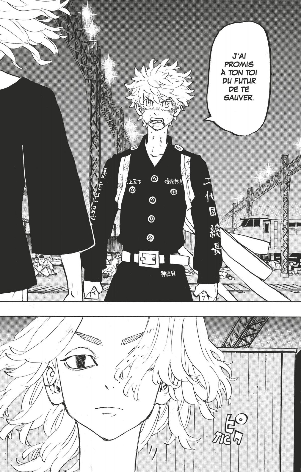 L’affrontement entre le Tokyo Manjikai 2e génération et le Kanto Manjikai atteint son paroxysme ! Takemichi se retrouve enfin face à Mikey ! Alors qu’une partie du passé de celui-ci est révélée, les visions de Takemichi semblent se renforcer pendant leur combat ! Les sentiments de Takemichi vont-ils atteindre Mikey ?