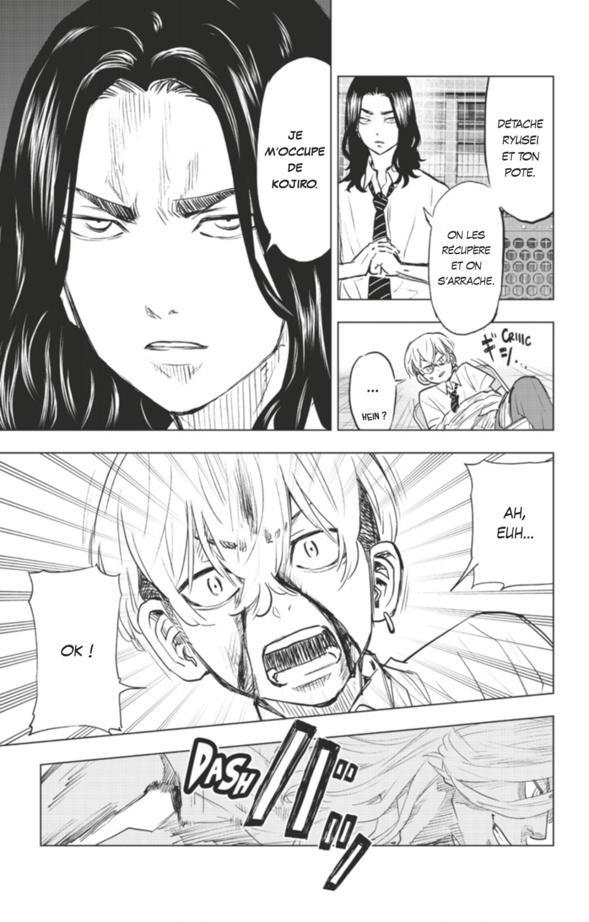Alors que Baji va à la rencontre du Yotsuya Kaidan pour récupérer Chifuyu et Ryusei, quelqu’un se met en travers de son chemin... et ce n’est autre que Ryusei lui-même, qui décide de trahir la brigade. Que peut bien ressentir ce dernier envers Hishi, avec qui il a partagé tant de choses depuis tout petit ?