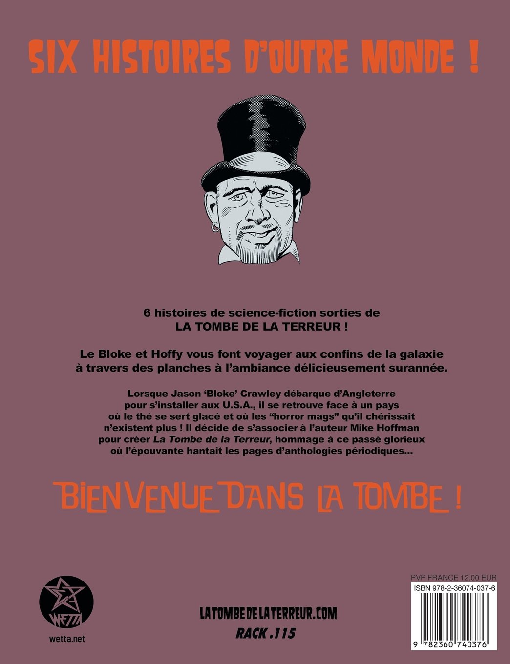 6 histoires de science-fiction sorties de La Tombe de la Terreur ! Le Bloke et Hoffy vous font voyager de la Terre aux confins de la galaxie à travers des planches à l’ambiance délicieusement surannée.