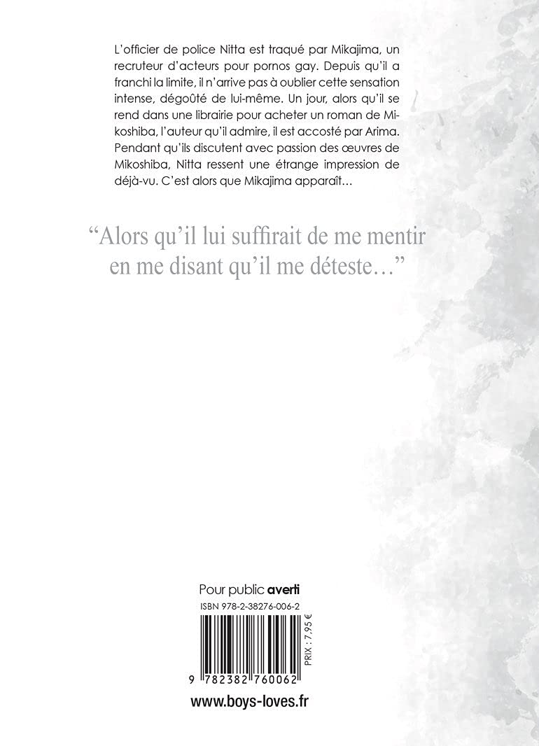 L’officier de police Nitta est traqué par Mikajima, un recruteur d’acteurs pour pornos gays. Depuis qu’il a franchi la limite, il n’arrive pas à oublier cette sensation intense, dégoûté de lui-même. Un jour, alors qu’il se rend dans une librairie pour acheter un roman de Mikoshiba, l’auteur qu’il admire, il est accosté par Arima. Pendant qu’ils discutent avec passion des oeuvres de Mikoshiba, Nitta ressent une étrange impression de déjà-vu. C’est alors que Mikajima apparaît...