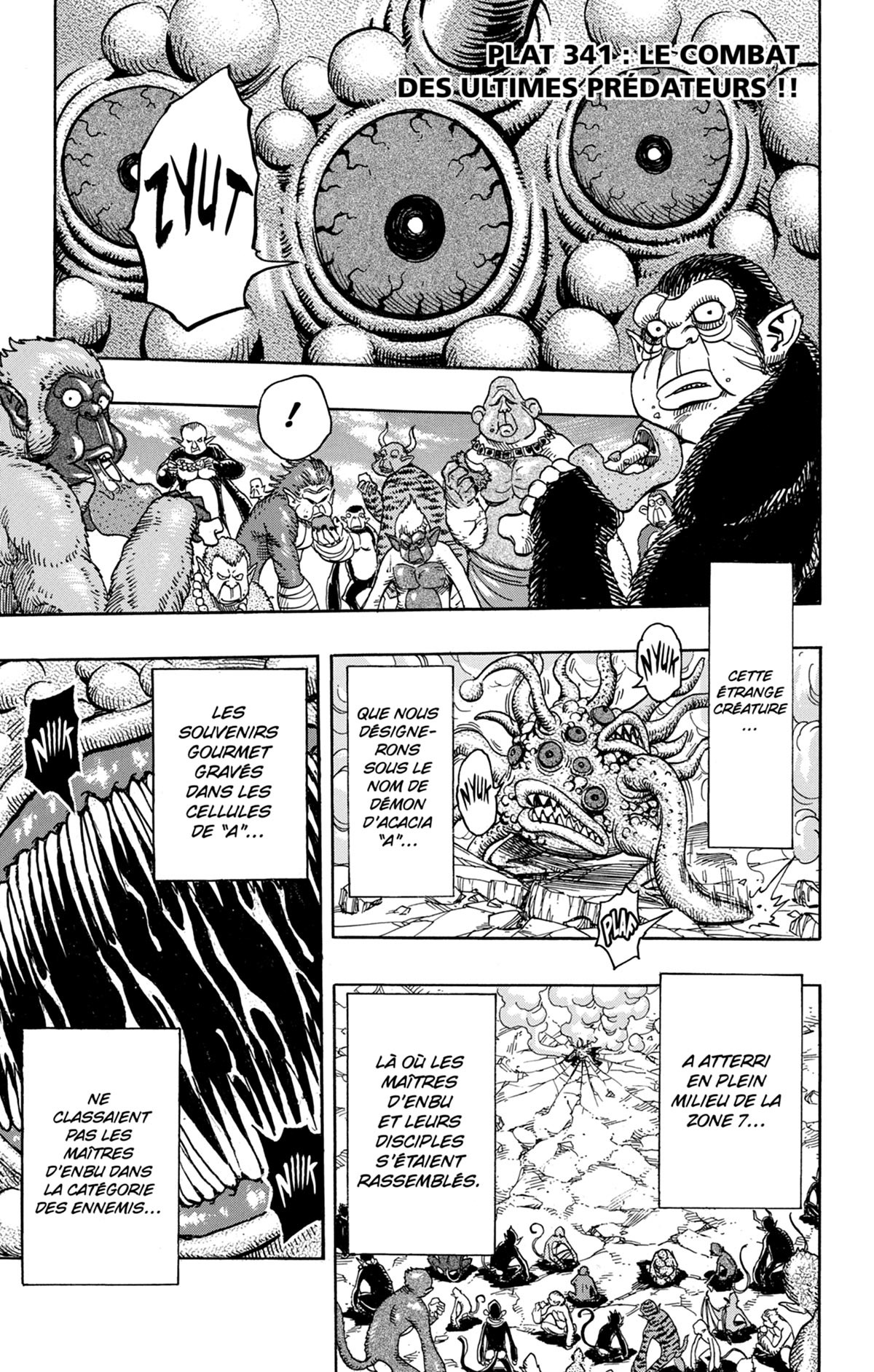 À l’approche de la redoutable Éclipse Gourmet, la quête des plats du menu idéal d’Acacia est devenue une question de vie ou de mort ! Toriko se retrouve nez à nez avec Guinness, le Roi-Loup à la puissance incalculable. Mais, alors qu’ils sont sur le point de s’affronter, Komatsu lui apprend que la préparation d’ANOTHER est enfin achevée grâce aux talents conjugués de nombreux cuisiniers. Parmi eux, le souverain de Blue Grill, le mystérieux Don Slime...