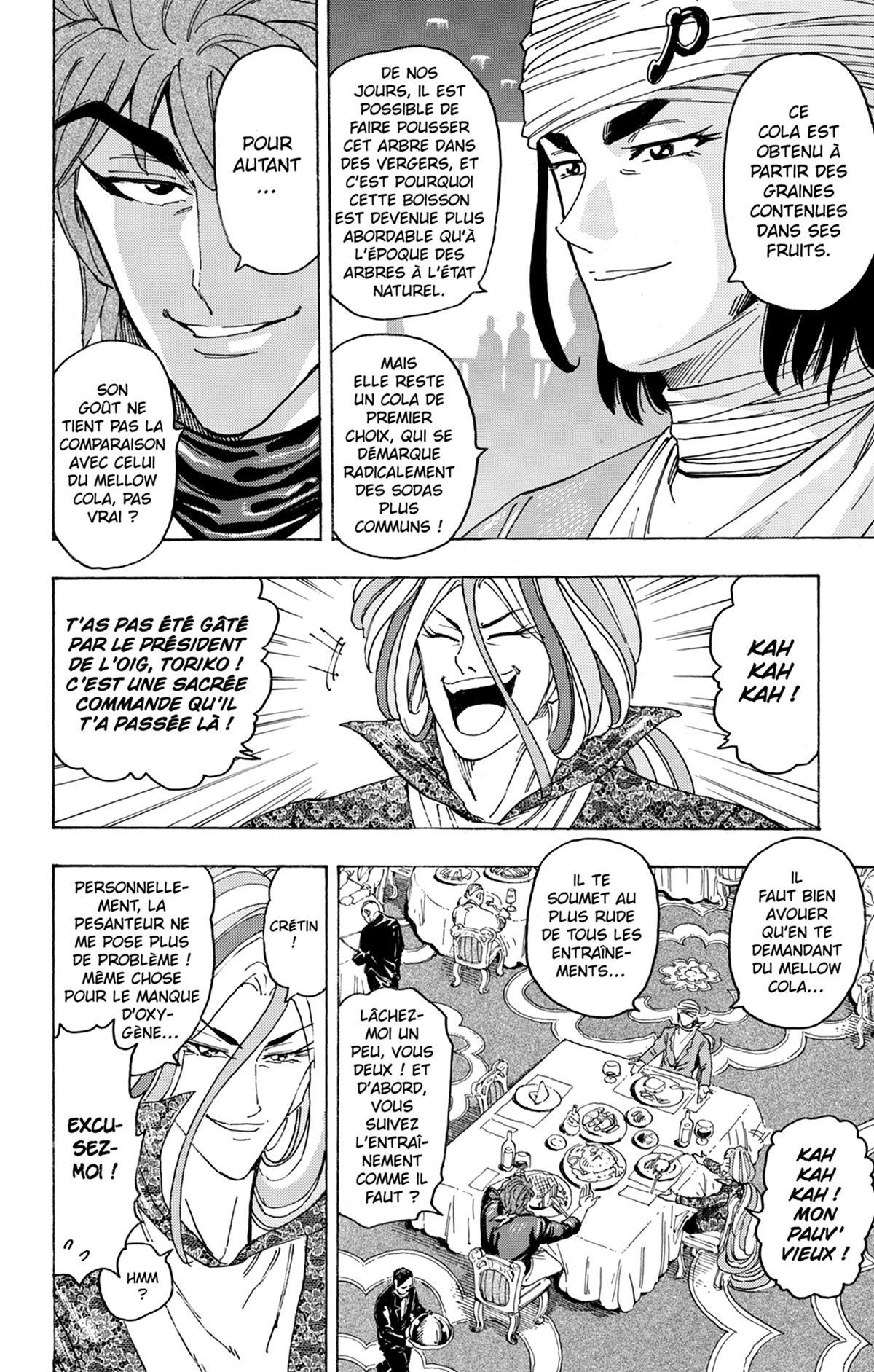 Alors que Toriko a finalement percé le mystère de la Poussière d’Étoiles de Merck, Komatsu s’est fait forger un nouveau couteau au tranchant hors du commun. Mais la liste d’ingrédients commandés par Ichiryû est encore incomplète ! Notre Gourmet Hunter doit désormais mettre la main sur le Mellow Cola, renfermé au coeur de la Pyramide Gourmet. Pour espérer sortir indemne de ce lieu baptisé "Cimetière des Gourmet Hunters", Toriko décide de faire appel au plus insaisissable des Quatre Rois, le terrifiant Zebra, classé "Danger Public Numéro 1".