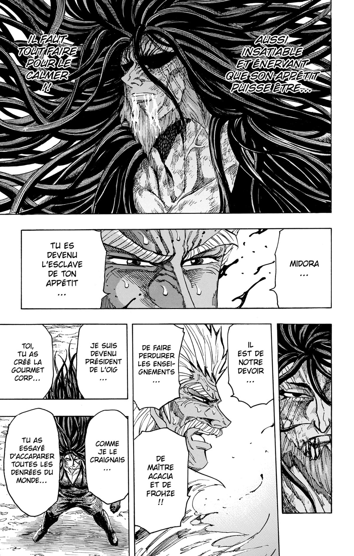 Le verdict du titanesque combat entre Midora et Ichiryû est sans appel : le boss de la Gourmet Corp. l’a emporté sur le patron de l’OIG. Son cri de victoire s’abat sur le monde humain sous la forme de l’Épice Météorique, le plus mortel des condiments ! La menace pesant sur le monde Humain, l’identité du "véritable ennemi" évoqué par Ichiryû, la trahison de l’organisation NEO, la capture de Komatsu par la Gourmet Corp... Toriko serait-il à la hauteur de tous ces défis ?