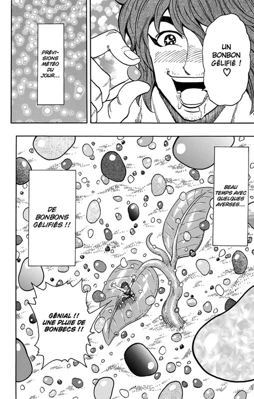 Toriko et Komatsu ont non seulement survécu dans le monde Gourmet, mais se sont même acclimatés ! Après avoir mis à profit ce séjour en récoltant un grand nombre de denrées extraordinaires, les deux compères regagnent le monde Humain. Mais les conséquences de la terrible attaque de Midora se font encore ressentir et la pluie d’aliments que Toriko fait s’abattre sur la Terre ne suffit pas à éradiquer la famine. Les Quatre Rois entrevoient alors une solution et se lancent à la recherche de l’ingrédient central du menu idéal d’Ichiryû : l’oeuf d’un oiseau mystérieux...
