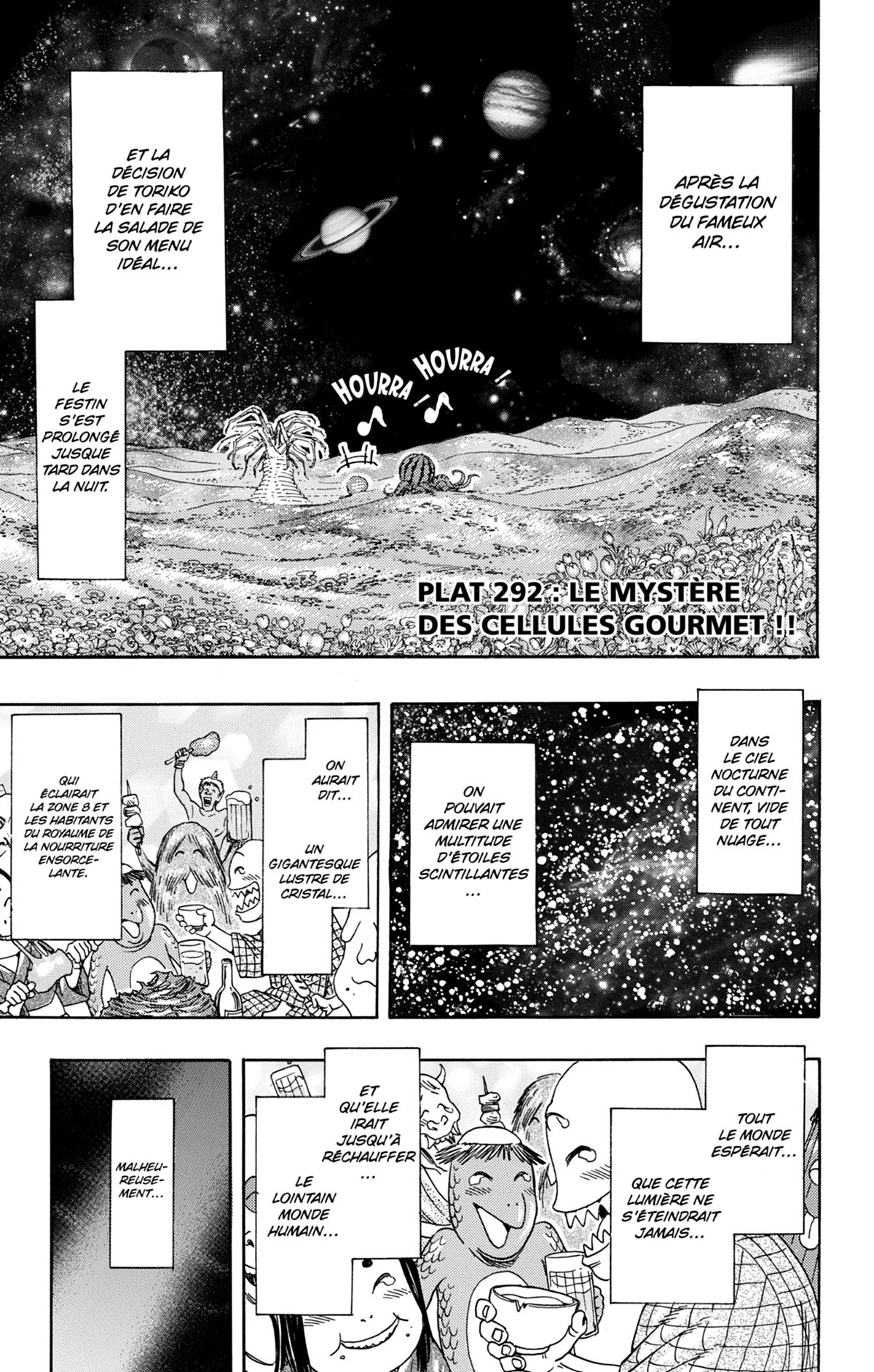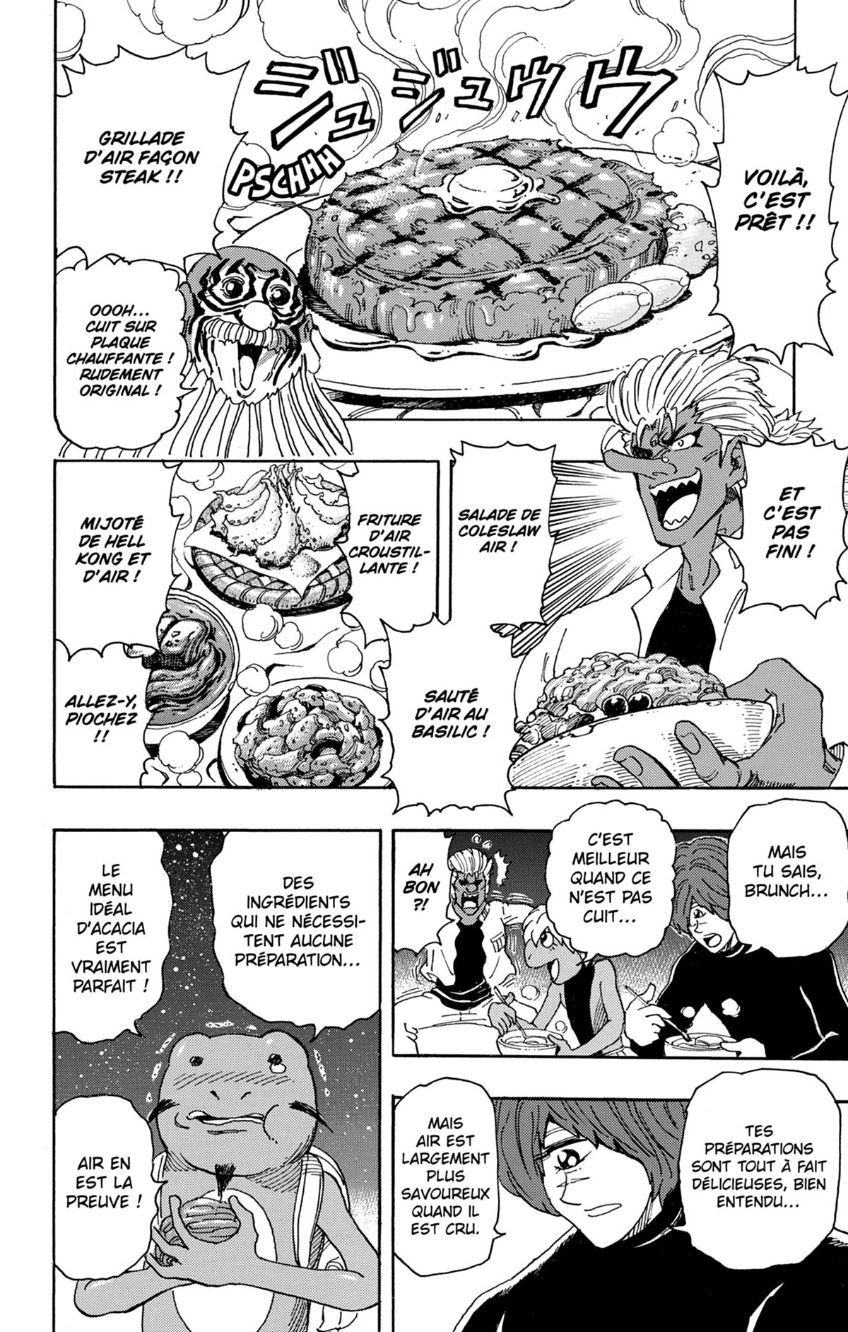 Grâce à AIR, la "Reine des Denrées", les cellules Gourmet des Quatre Rois subissent une métamorphose époustouflante ! Mais une ombre malfaisante ne tarde pas émerger, et s’abat sur Komatsu... Ce crime odieux est l’oeuvre de Teppei, l’ancien Gourmet Reviver devenu membre de NEO ! Toriko et ses compères se mettent aussitôt en route pour la Zone 7 afin d’y récolter PAIR, la seule denrée capable de sauver le meilleur des cuisiniers !