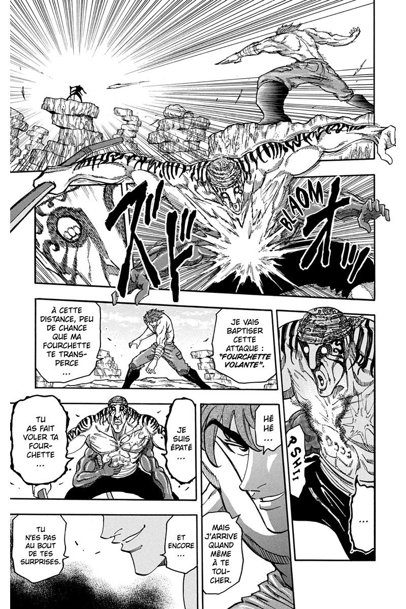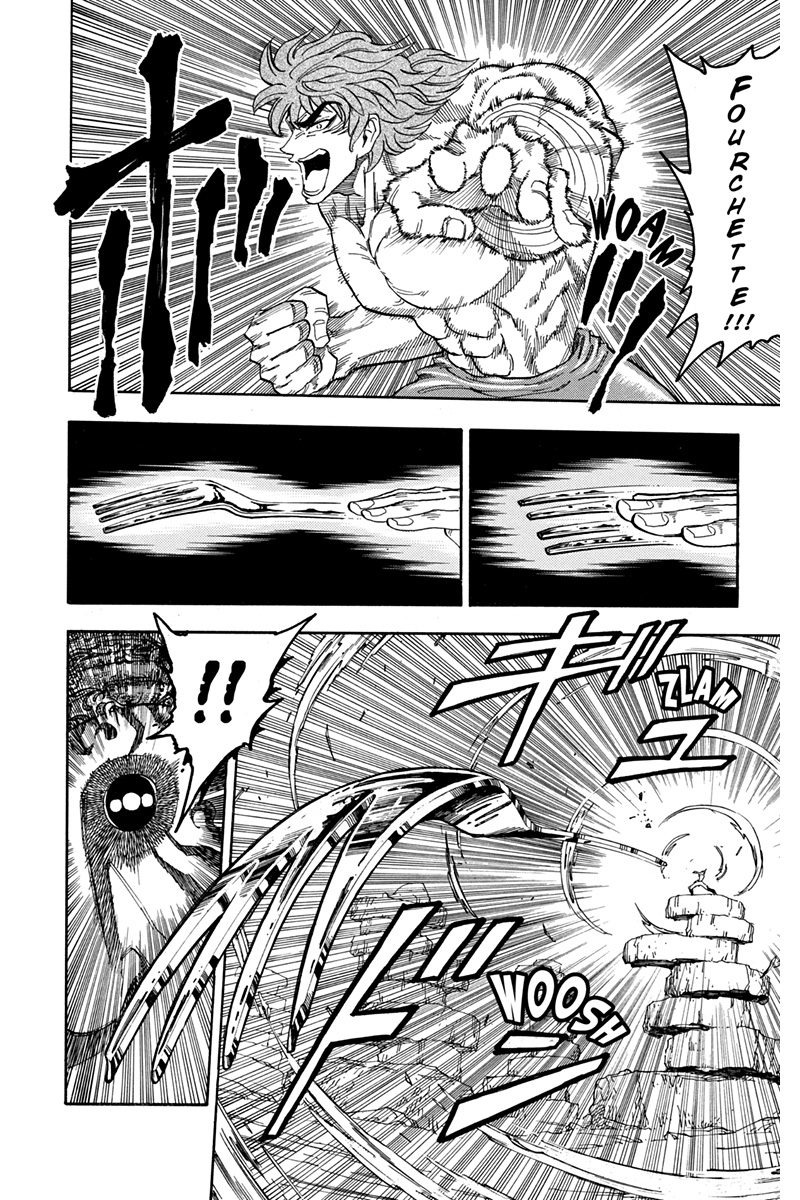 Le Toriko nouveau est arrivé et ses techniques se sont affinées ! En augmentant drastiquement la portée de son "couteau" et de sa "fourchette", il parvient à tenir en échec son ennemi suceur de denrées rares... Mais celui-ci est tout sauf un sbire lambda de la Gourmet Corp... C’est d’ailleurs dans les quartiers généraux de cette organisation terroriste que se tient, au même moment, un funeste banquet auquel ont été conviés ses principaux chefs.