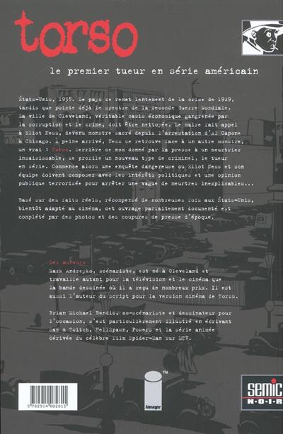 Des meurtres en série semblent répondre à une logique, celle d’un fou. Nous sommes à Cleveland, aux USA, en 1935 et le Directeur de la sûreté Eliot Ness, après avoir bouclé Al Capone (comme raconté dans les Incorruptibles), enquête sur l’affaire. Mais l’assassin ne laisse que les torses de ses victimes, ce qui rend l’identification impossible. Par la BD, Brian Bendis nous fait découvrir cette histoire vraie du premier serial killer reconnu. Hitler en aurait même parlé comme preuve de la décadence de l’empire américain ! C’est dire si l’histoire est célèbre. La partie éditoriale en sus de la BD regroupe des articles de journaux et des commentaires de l’auteur, pour comprendre les dessous de cette affaire dont la conclusion officielle diffère de la réalité. Le dessin noir et blanc très épuré réhausse l’ambiance sombre de polar et le côté véridique est soutenu par de véritables clichés.
