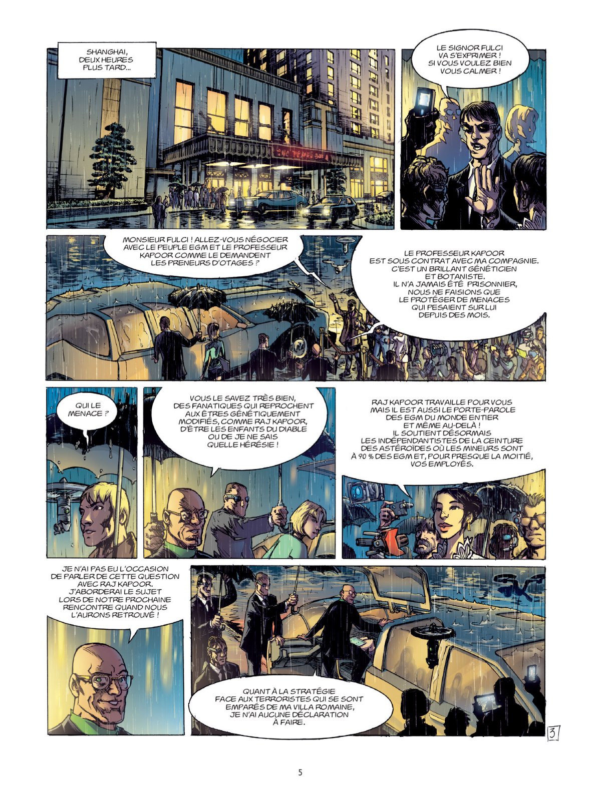 Rome, juin 2054, la Villa Fulci est prise d’assaut par un groupuscule de soldats du peuple EGM. Ces derniers réclament justice dans les conflits qui les opposent aux multicontinentales dans les exploitations minières de la grande ceinture des Astéroïdes. De son côté, Travis est en orbite dans la station internationale et attend le retour de la mission Europe lorsqu’une mutinerie est annoncée dans le vaisseau...