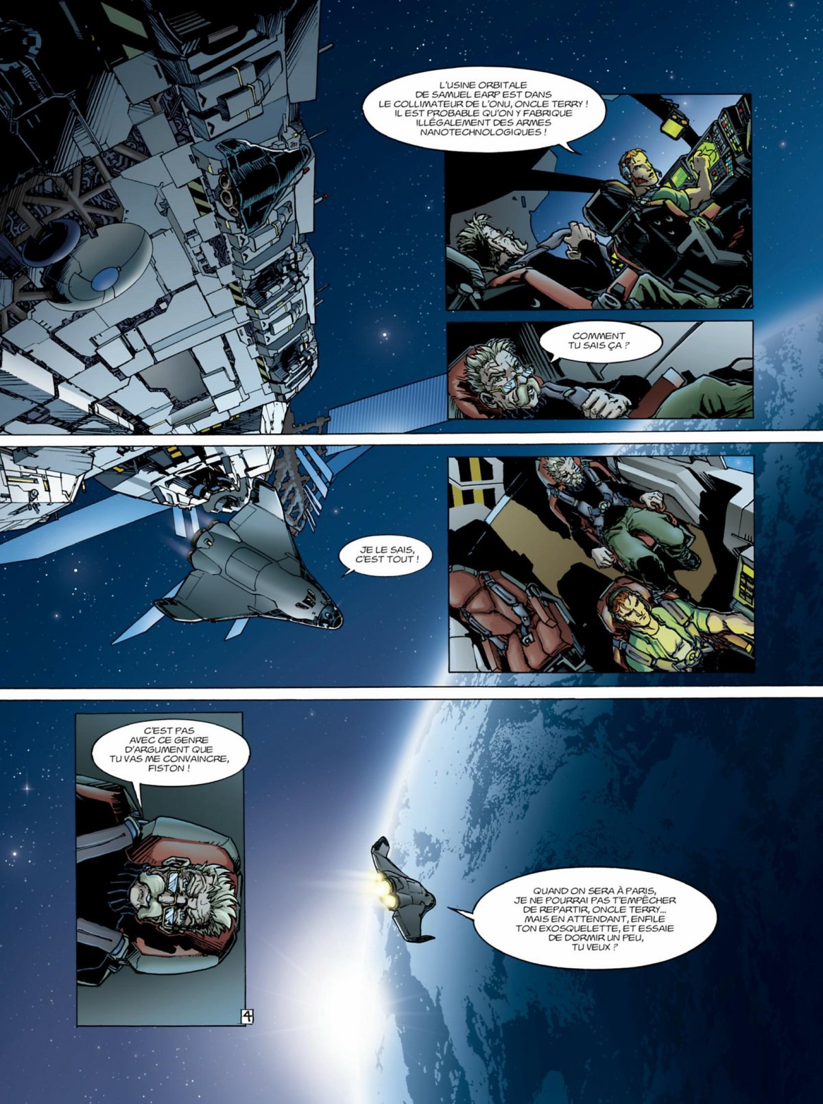 Juin 2053. Vitruvia, un consortium de travaux publics, est chargée de réaliser l’extension de l’astroport privé de l’Est Parisien. Cette extension passe par la destruction d’un lotissement insalubre construit au début du XXIe siècle. Pour réaliser son projet, Vituvria doit se débarrasser d’un habitant récalcitrant... le père du meilleur ami de Travis !(Existe aussi en coffret/nouveauté pouvant accueillir les tomes 6.2 et 7)