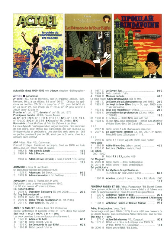 Un argus des albums, revues, tirages de tête, portfolios, mangas, etc., avec l’indication des cotes et un répertoire professionnel.