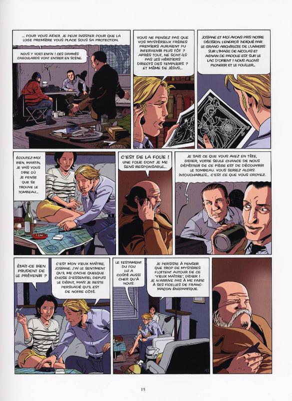 Didier Mosèle et Josiane Marlane se rendent à nouveau en Champagne pour tenter de retrouver le chemin qui aurait conduit Francis au tombeau du Christ. Ils recherchent les deux Jean de la Forêt d’Orient sans trop savoir de quoi il s’agit... Deux pierres ? Deux statues ... Mais les Gardiens du Sang les assaillent et laissent Didier pour mort... Seulement gravement blessé, il est soigné par des inconnus dans un lieu tenu secret. Lorsqu’il retrouvera Josiane, il comprendra qu’il est maintenant entre les mains des derniers Maîtres Architectes du Plan.Au Vatican, le Cardinal de Guilio n’annonce pas la mort du Pape Jean XXIV pour gagner du temps. Il empêche artificiellement la décomposition de son corps, faisant croire qu’il dort. De Guilio peut ainsi gouverner seul...Le flash-back de l’album nous montre le Christ et la communauté essénienne du monastère de Khirbet Qumran. Nous en apprenons plus sur Jean le Baptiste et ses amis Jésus et Thomas...Le dénouement de cette terrible aventure est proche, et cette série est de plus en plus passionnante...