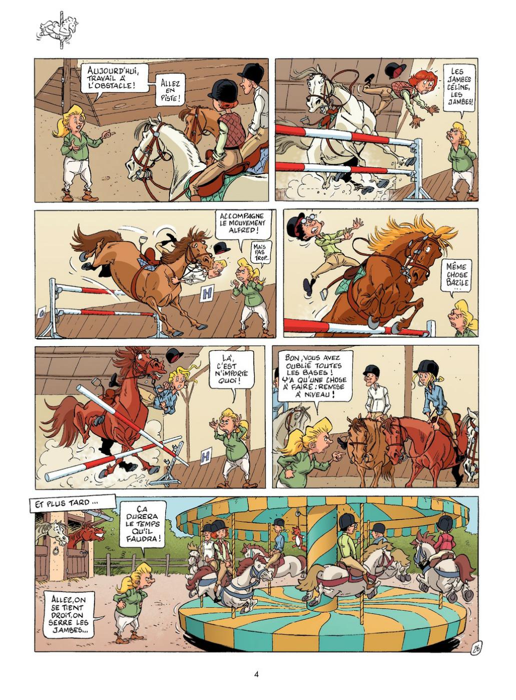 Séances de mise en forme, toilettage, promenades dans les bois... Eh oui, la plus belle conquête du cheval, c’est bien l’homme ! Ce ne sont pas les personnages hauts en couleur de cette BD qui le démentiront. Souvenez-vous, vous les avez sûrement déjà croisés... Il y a Monique, la monitrice du club hippique, pas très féminine, râleuse mais sympa ; son frimeur de fils Roméo, qui rêve d’être un grand champion de concours hippique ; Bébert, l’emblématique palefrenier qui a toujours vécu "dans" les chevaux... Des chevaux fièrement représentés par Mascotte, le poney facétieux, Blanche Neige la jolie jument ou Ramsès le crack.