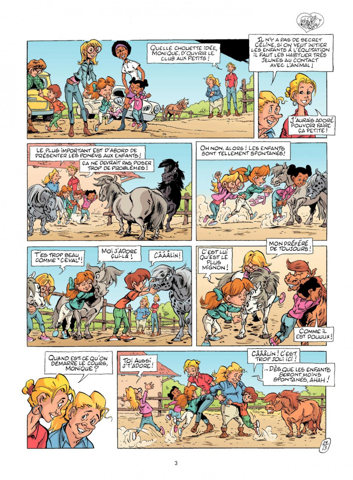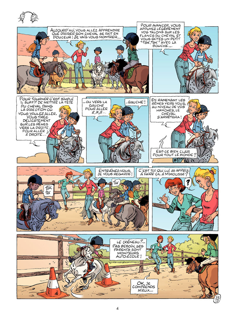 Attention, nouveaux arrivants : les poneys débarquent au club ! Le club du Triple Galop s’est doté d’une nouvelle section d’apprentissage : le poney club pour les bambins de 3/4 ans. Monique va enseigner à ses apprentis cavaliers les bases de l’équitation. Contact, respect de l’animal et activités ludiques sont au programme. Du côté des chevaux, cela va changer pas mal de choses : nouvelle organisation, nouveaux élèves, nouvelles galères ! Mais l’arrivée dans les écuries des (tout petits) poneys Shetlands fait au moins un heureux : Mascotte. Il va ainsi se sentir un peu plus grand.