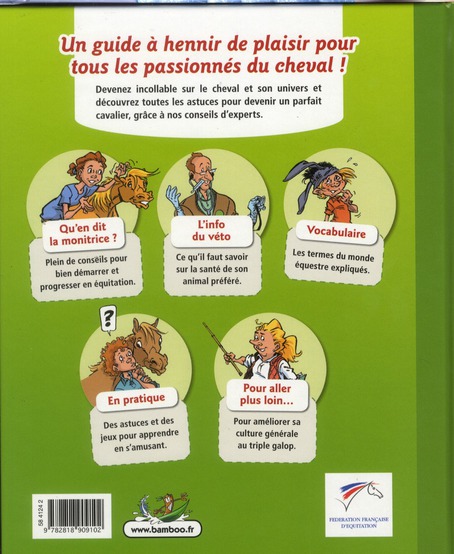 Un guide pour tout connaître du cheval, de la théorie à la pratique ! Si le cheval est votre passion, ce guide devrait vous faire hennir de plaisir ! La première partie vous permettra de tout savoir sur le cheval : les différentes races, les soins, l’alimentation, ou encore le comportement. Dans la seconde partie, vous découvrirez toutes les astuces pour devenir un cavalier parfait, de l’équipement à la posture idéale. Le tout illustré par la bonne humeur équestre de Du Peloux !