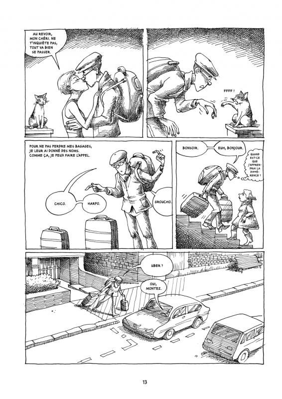 Mana Neyestani est réfugié en France depuis 2011 après avoir dû s’enfuir d’Iran à cause d’un dessin, des événements qu’il a décrits dans son premier livre, Une Métamorphose Iranienne (çà et là/arte éditions, 2012). Dans Trois Heures, il raconte comment sa condition de réfugié lui pèse, condamné à ne pas pouvoir revenir dans son pays où il risque la prison à vie, tout en ne sentant pas encore chez lui en France. Cette condition lui a été cruellement rappelée en 2017, au moment où il s’apprêtait à s’envoler pour le Canada pour rendre visite à son frère. Bloqué à l’aéroport par la compagnie aérienne qui ne savait pas comment traiter son titre de voyage de réfugié, Mana Neyestani s’est heurté à un mur d’incompréhension. Trois Heures détaille cette longue attente durant laquelle il ne peut que constater son impuissance et le peu d’attention accordée aux personnes dans sa position. C’est aussi l’occasion pour cet homme timide qui n’ose jamais élever la voix ou défendre ses intérêts de se livrer à un exercice d’introspection.