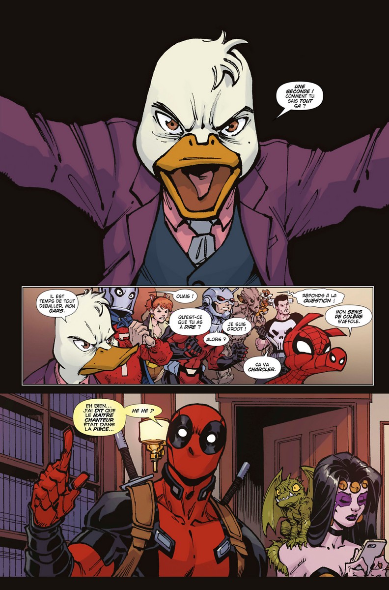 Un manoir, des invités, un meurtre mystérieux, une enquête : non, ce n’est pas un nouveau roman d’Agatha Christie mais bien une soirée classique pour Deadpool ! Avec l’aide de Rocket Raccoon, Ecureuillette mais aussi le Punisher et Howard le Canard, notre Mercenaire Disert va devoir découvrir qui est l’assassin