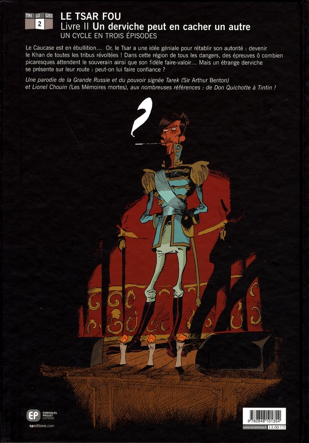 Le Caucase est en ébulition. Or, le Tsar a une idée géniale pour rétablir son autorité : devenir le Khan de toutes les tribus révoltées ! Dans cette région de tous les dangers, des épreuves ô combien picaresques attendent le souverain ainsi que son fidèle faire-valoir. Mais un étrange derviche se présente sur leur route : peut-on lui faire confiance ? Une parodie de la Grande Russie et du pouvoir signée Tarek et Lionel Chouin.