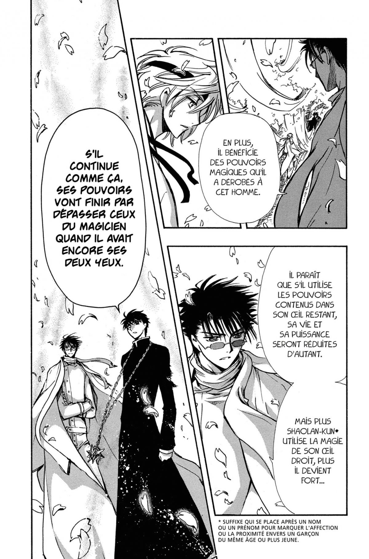 À peine les membres de la petite bande sont-ils arrivés au Pays du Japon que Shaolan s’engage dans un combat sans merci contre Seishirô afin de récupérer la plume de Sakura. Mais il est happé dans le monde des rêves où il retrouve Sakura... et l’autre Shaolan. Le combat semble inévitable. Qui en sortira vainqueur ?
