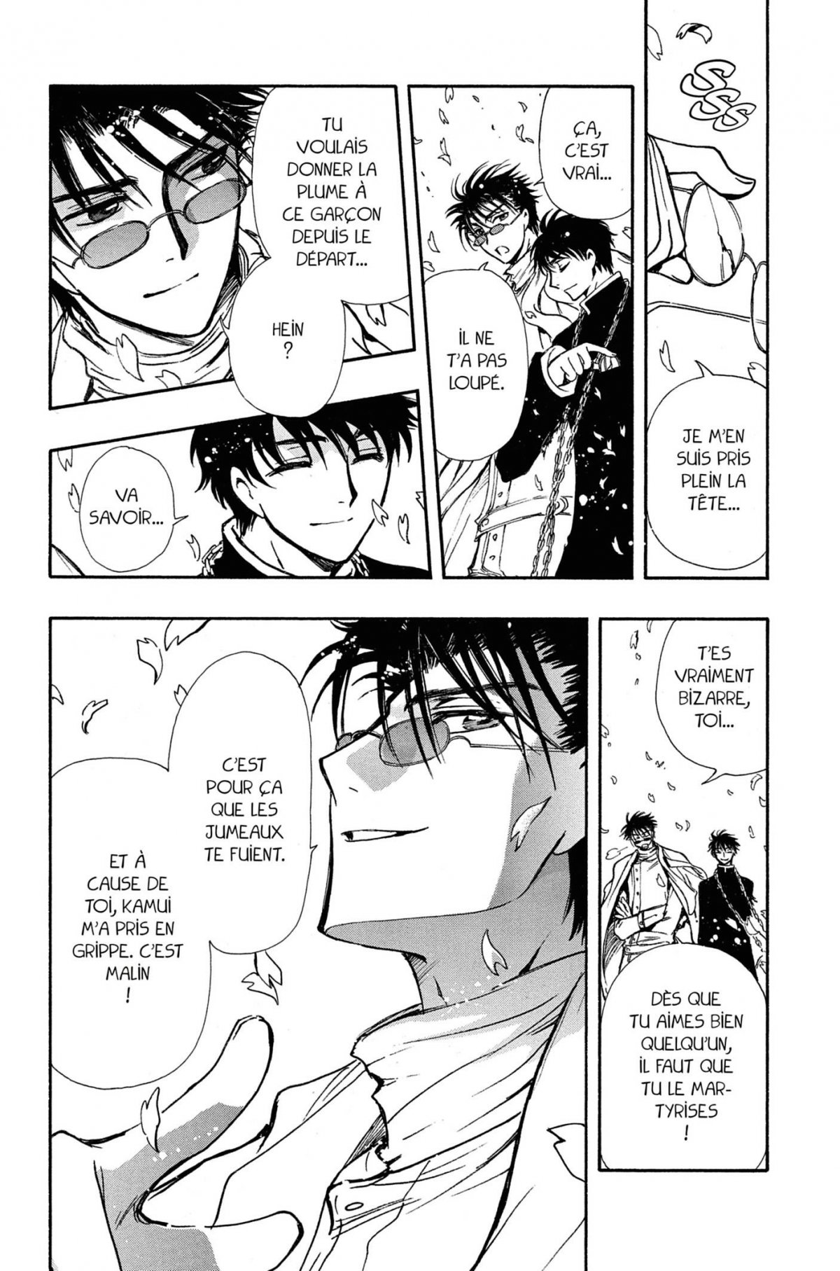 Au pays du Japon, Shaolan a entamé un rude combat contre Seishirô afin de récupérer la plume de Sakura. Lorsque, soudain, il est happé dans le monde des rêves. Mais à peine a-t-il retrouvé Sakura qu’il se retrouve face à face avec l’autre Shaolan ! A l’issue de ce duel inévitable, une révélation frappe notre héros de plein fouet... Quelle est la nature de cette vérité si brutale ?!