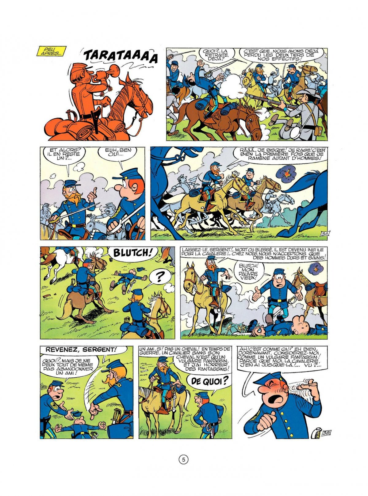 Une bataille entre les Nordistes et les Sudistes tourne mal pour les Yankees. Devant la possibilité d’un échec, le général ordonne d’envoyer la cavalerie. Le sergent Chesterfield et le caporal Blutch s’élancent ainsi sous les ordres d’un officier qu’ils connaissent bien, le capitaine Stark, visiblement remis de ses blessures, et qui est réaffecté au commandement du 22e de cavalerie. N’ayant pas changé, il se lance dans une charge suicidaire, et finit par révoquer de la cavalerie Chesterfield et Blutch, le premier pour insubordination, le second pour lâcheté. Nos héros vont alors voyager dans tous les corps d’armes, provoquant l’exaspération de tous leurs officiers : fantassins, artilleurs, et même brancardiers. Finalement, ils seront réaffectés au dernier poste qui puisse exister, celui de la marine