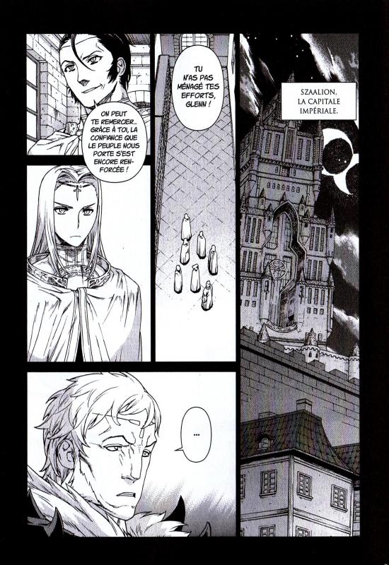 Dans les airs, la bataille fait rage entre les forces impériales et les alliés d’Arksart. Profitant de la confusion, Köinzell parvient à monter à bord du vaisseau amiral, où il retrouve enfin face à Lebellond