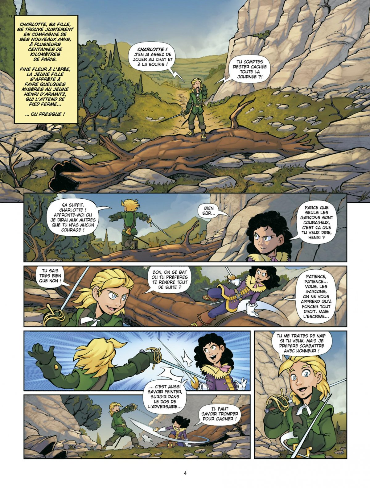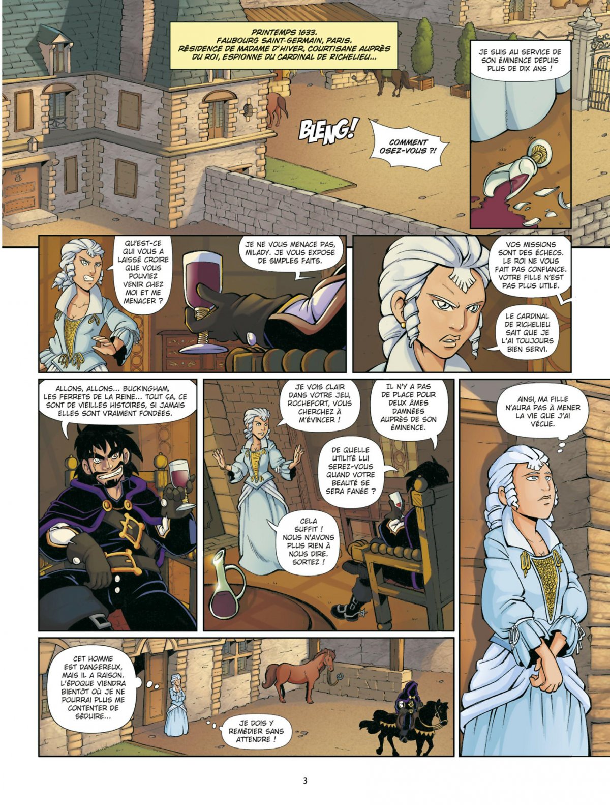 Rochefort, l’âme damnée de Richelieu, pousse certains de la Cour des miracles à s’en prendre au maître d’armes. Les jeunes Savinien Cyrano et Blaise Pascal parviennent à s’enfuir et rejoignent le reste des apprentis mousquetaires à Lyon. Après une discussion à bâtons rompus, la petite troupe, accompagnée de Charlotte, la fille de Milady, décide d’affronter le danger et rentre à Paris...