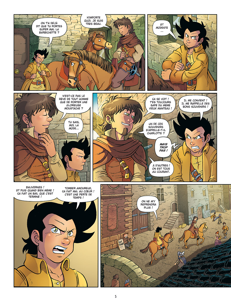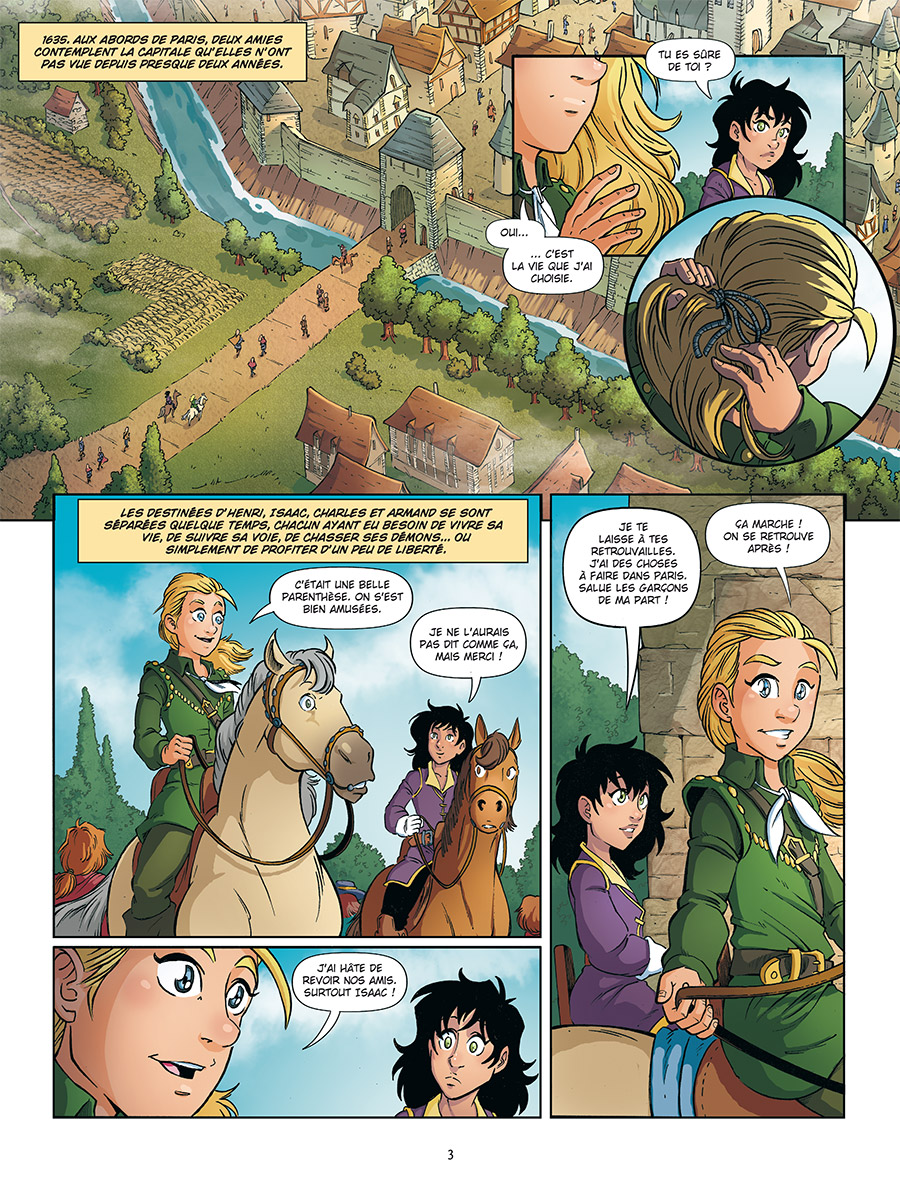 De retour à la capitale après deux années d’aparté salvatrices, le petit groupe se retrouve enfin pour une dernière aventure. De la cour des miracles à celle du roi Louis XIII, nos joyeux bretteurs pousseront l’aventure jusqu’en Italie. Le roi les promeut dans le régiment glorieux des Gardes françaises, prestigieuse porte ouverte pour devenir un jour mousquetaires du roi !