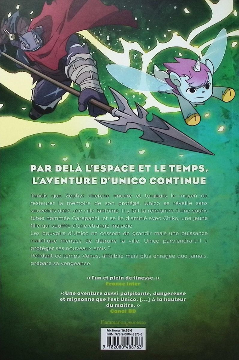 Tandis que Zéphyr cherche encore et toujours le moyen de restaurer la mémoire de son protégé, Unico se réveille sans souvenirs dans une ville fantôme. Il y fait la rencontre d’une souris futée nommée Garapachi, et se lie d’amitié avec Chiko, une jeune fille qui souffre d’une étrange maladie. Les pouvoirs d’Unico ne cessent de grandir mais une puissance maléfique menace de détruire la ville. Unico parviendra-t-il à protéger ses nouveaux amis ? Pendant ce temps Venus, affaiblie mais plus enragée que jamais, prépare sa vengeance.