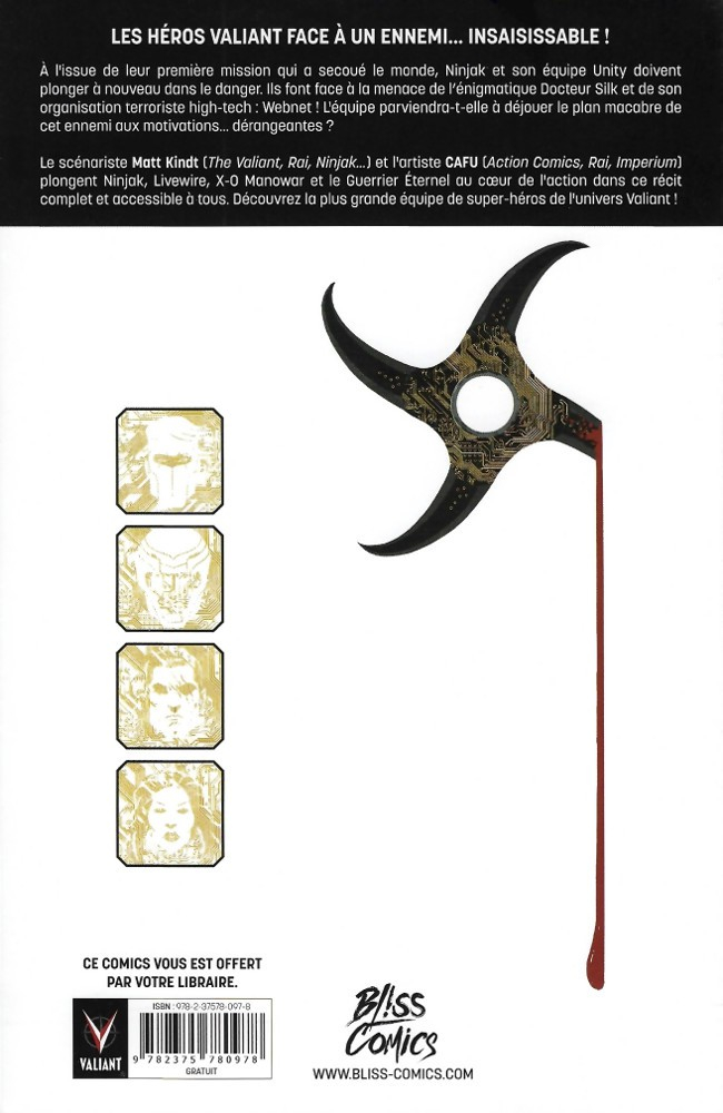 À l’issue de leur première mission qui a secoué le monde, Ninjak et son équipe Unity doivent plonger à nouveau dans le danger. Ils font face à la menace de l’énigmatique Docteur Silk et de son organisation terroriste high-tech, Webnet. L’équipe parviendra-t-elle à déjouer le plan machiavélique de cet ennemi aux motivations... dérangeantes ?