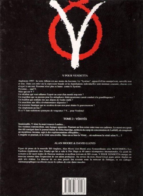 Vérités est le volume 2 de la série V pour Vendetta par Alan Moore et David Lloyd, paru en 1989. Selon nos informations, il n'en existe qu'une seule édition, publiée par Zenda.