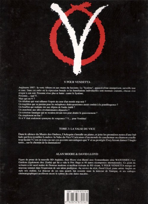 Valse du vice (La) est le volume 3 de la série V pour Vendetta par Alan Moore et David Lloyd, paru en 1989. Selon nos informations, il n'en existe qu'une seule édition, publiée par Zenda.