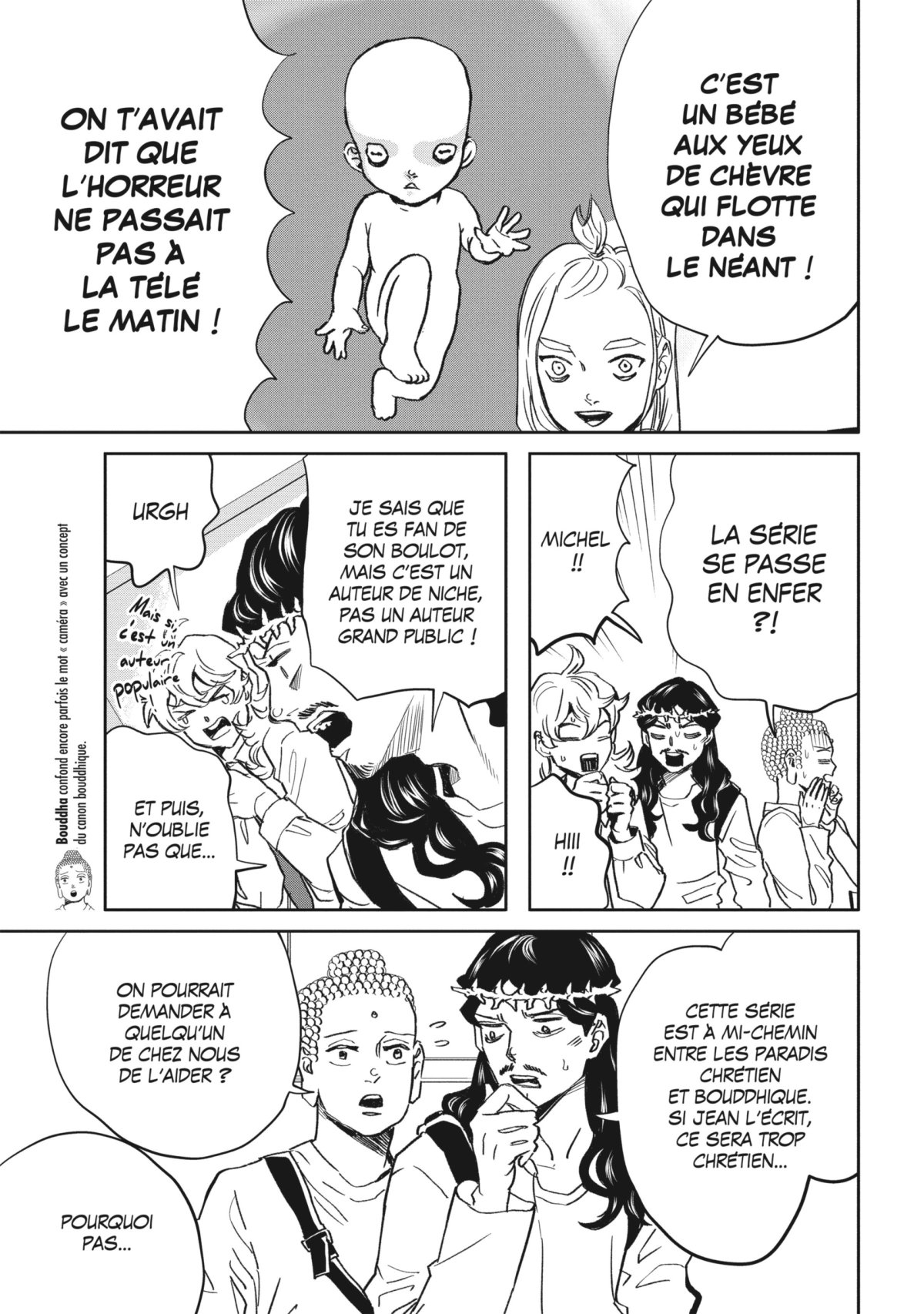 .À la suite des précédents chapitres, le Ciel a décidé de tourner une série de super héros avec Jésus et Bouddha pour accueillir les âmes au paradis. Mais le tournage s’avère plus mouvementé que prévu quand les démons viennent mettre leur grain de sel ! Pendant ce temps, la famille d’un certain yakuza s’agrandit, les colocataires de Jésus et Bouddha découvrent l’adiction à Netflix, et les mères de nos deux héros font du shopping comme on n’en fait plus au xxie siècle !