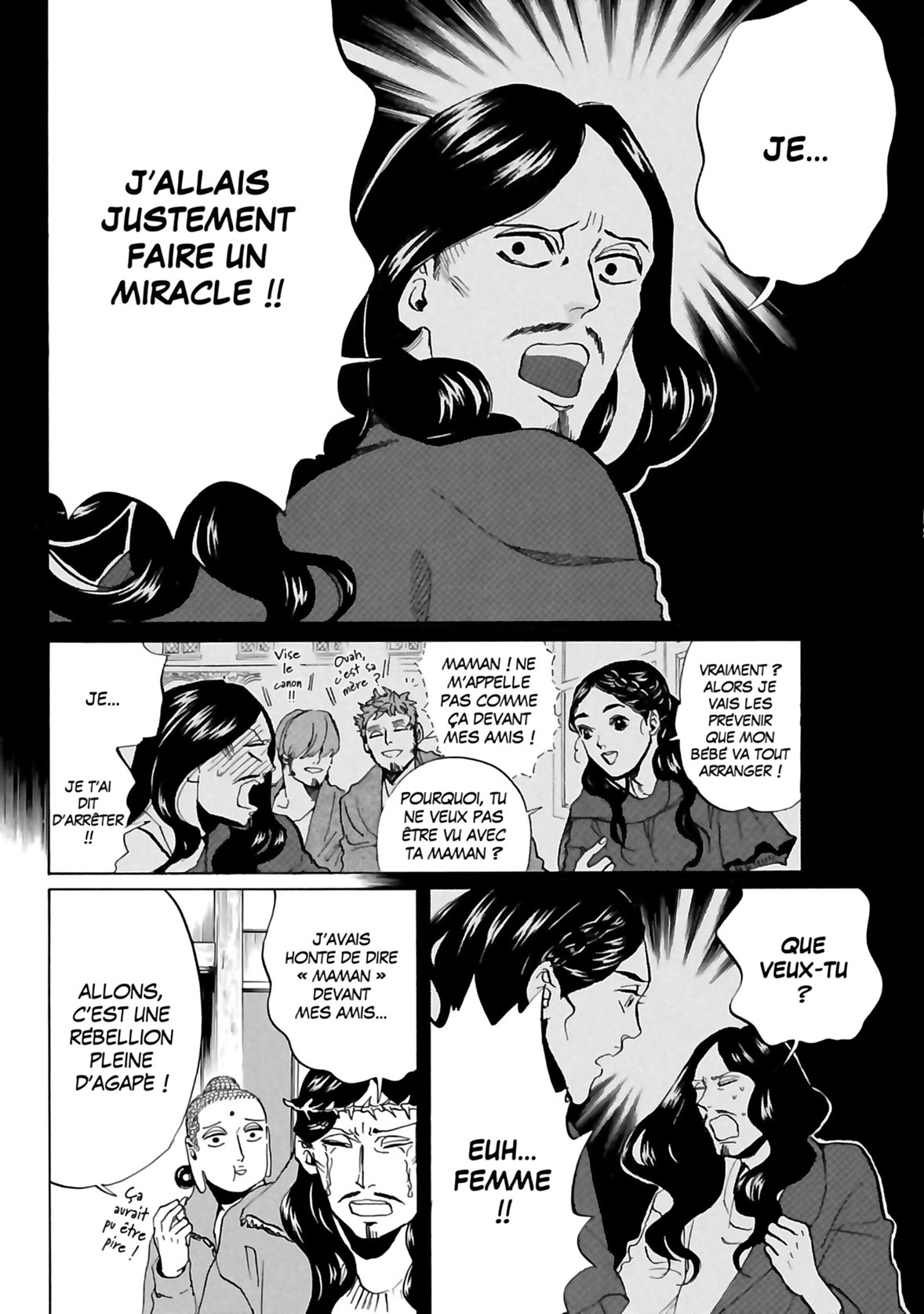 Bouddha, l’Éveillé, et Jésus, le fils de Dieu, commencent à prendre goût à la vie sur Terre. Fraternisant aussi bien avec leur ami yakuza ou leur logeuse qu’avec leurs vieilles connaissances d’avant leur sainteté, ils doivent néanmoins continuer à gérer l’un de leurs problèmes les plus épineux : leur propre mère ? Car ils commencent à beaucoup manquer au paradis !