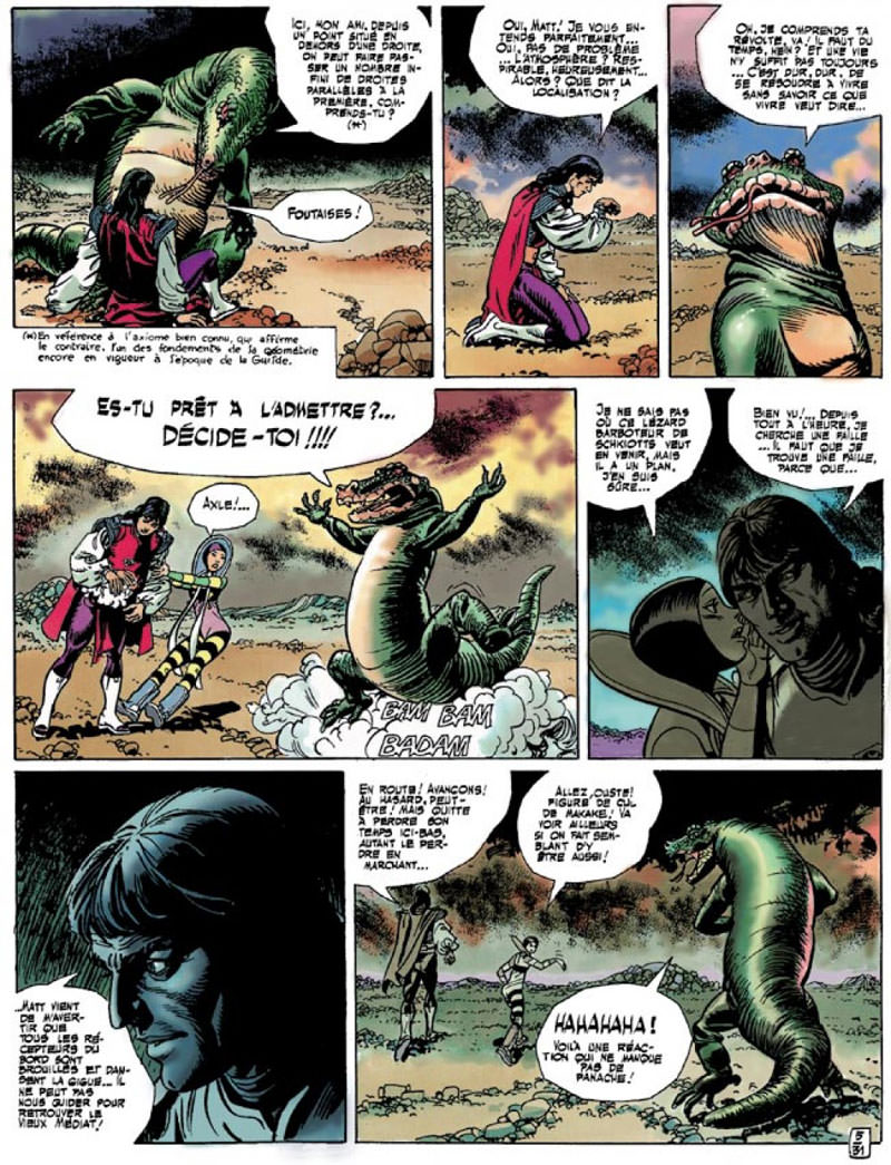 L’occasion pour Christian Godard de laisser libre cours a son talent de scénariste et a son imagination inépuisable, jamais en défaut d’inspiration des qu’il s’agit d’inventer des situations nouvelles ou de s’amuser avec toutes les richesses du langage. Servi par le trait efficace et réaliste de son vieux complice Ribera, Godard se joue de la logique, manie la philosophie et tricote le paradoxe ? temporel ou non, peu lui importe