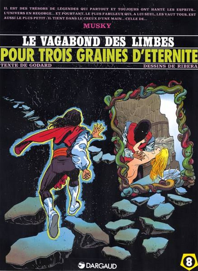 Pour trois graines d’éternité est le volume 8 de la série Vagabond des Limbes (Le) par Christian Godard et Julio Ribera, paru en 1981. Selon nos informations, il en existe 4 éditions, dont la principale est éditée par Dargaud en 1981.