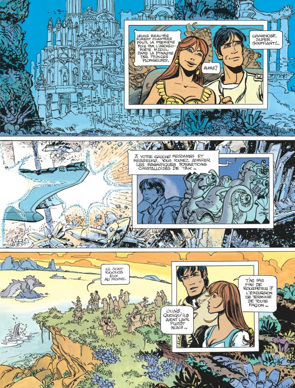 Valérian et Laureline passent leurs vacances sur l’un des paradis touristiques du cosmos - un lieu farci de milliardaires, comme cette pimbêche à quatre yeux incommodée par les Terriens, ou le richissime calife d’Iksaladam avec son harem et son califon, un petit salopiaud très mal élevé