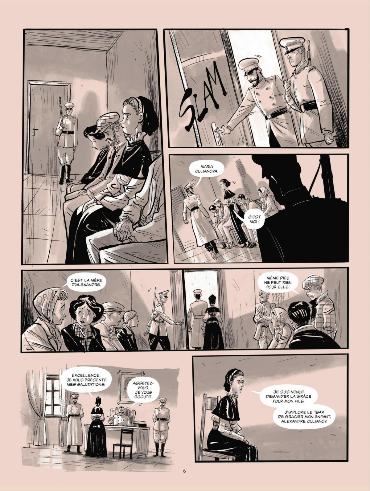 Revendiquant peut et fort sa responsabilité, Alexandre Oulianov est, lui, pendu le 11 mai 1887. La famille Oulianov, jusqu’ici respectée, souffre désormais d’un véritable ostracisme social et son frère cadet, Vladimir Ilitch est fou de douleur et de rage. Il jure alors qu’il tuera le Tsar, qu’il les tuera tous ! Mais comment faire pour atteindre les Romanov ? Alexandre a tracé la voie, la stratégie est déjà définie : c’est par le combat politique qu’il atteindra son objectif. Il commence à participer à des manifestations et réunions étudiantes. En décembre 1887, il est arrêté avec une trentaine d’autres étudiants, considérés comme des " meneurs ". La plupart sont réintégrés peu après à l’université, mais pas Vladimir Oulianov : du fait de son nom de famille, il est exclu de l’université. La suite de son parcours appartient à l’Histoire...