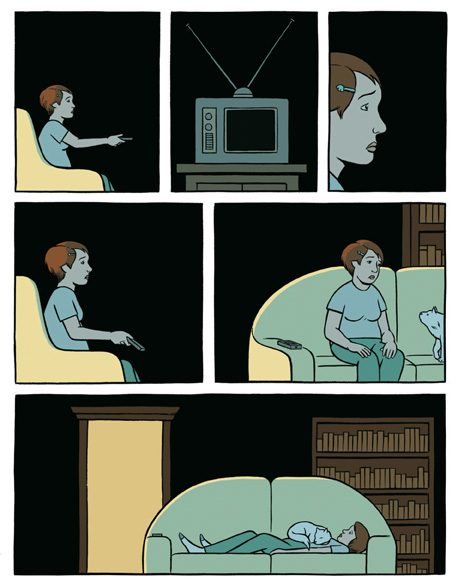 uniformes en sweat-shirt vert-de-gris, de boyfriend en boyfriend. Elle sent pourtant qu’il est temps pour elle de prendre sa vie en main avant qu’elle ne lui échappe. C’est donc cette vie sans danger, toute tracée, comme un soap, qu’Amy va prendre à bras-le-corps, va shooter dans le poste et ainsi faire basculer son destin. Au meilleur sens du mot, La Vie avec Mister Dangerous est un roman graphique, graphic novel, où Paul Hornschemeier fait montre d’une maîtrise parfaite de la narration, tout en revisitant sa thématique fétiche, existentielle, à savoir le modèle à suivre, à rattraper ou à détruire pour pouvoir soi-même exister.