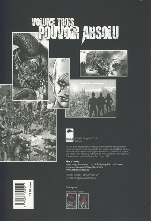 Pouvoir absolu est le volume 3 de la série Virus (Pangolin Comics) par Patrick Cornelis, paru en 2018. Selon nos informations, il n'en existe qu'une seule édition, publiée par Pangolin Comics.