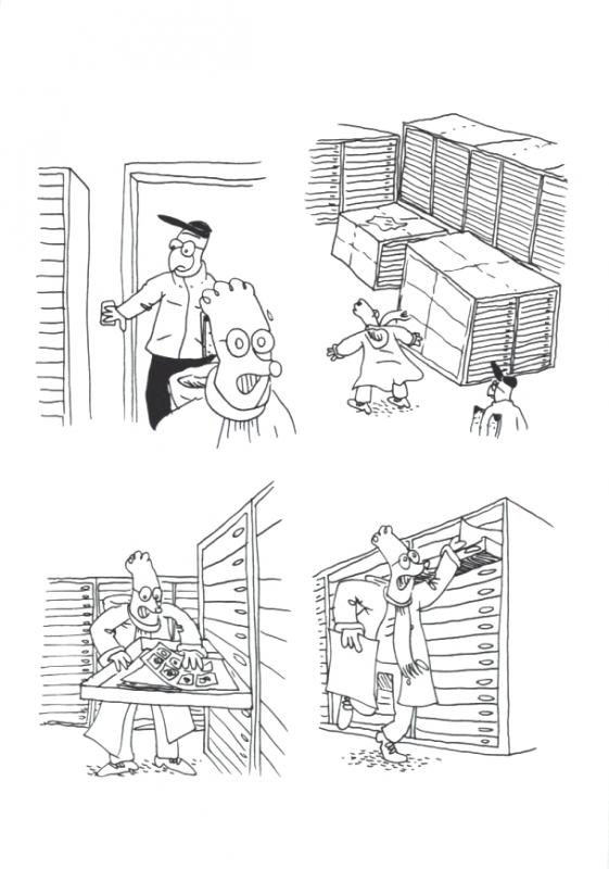 Heureusement pour lui et le directeur du musée qui l’accompagne, les planches de bande dessinée des grands auteurs conservées par le musée, se font planche de salut...elles flottent à merveille. Drôle et acide, ce récit enlevé se devait bien de trouver sa place dans la collection Patte de mouche.