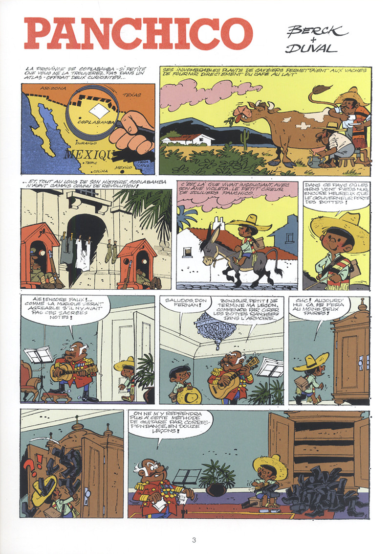 Viva Panchico ! est le volume 1 de la série Trésors de Berck du journal Tintin (Les) par Yves Duval et Berck, paru en 2023. Selon nos informations, il n'en existe qu'une seule édition, publiée par BD Must.